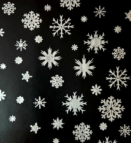 Christmas Wrapping Paper Black with Silver Snow Flakes (10 & 50 Meter Roll)